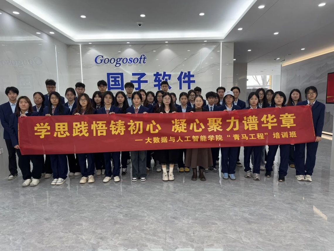 在人工智能、数字化浪潮澎湃的当下,为进一步推动实践育人工作走深走实,引导青年学子在社会实践中受教育、增本领、长才干;近日,大数据与人工智能学院党总支书记王红、团总支书记李海彬、辅导员李荣辉以及 “青马工程” 培训班学员代表,一同奔赴山东国子软件股份有限公司,开启了一场以 “学思践悟铸初心 凝心聚力谱华章” 为主题的青马工程 “访名企” 之旅,力求为学子们搭建起一座通往理论与实践融合的桥梁,助力他们在成长道路上扬帆远航。