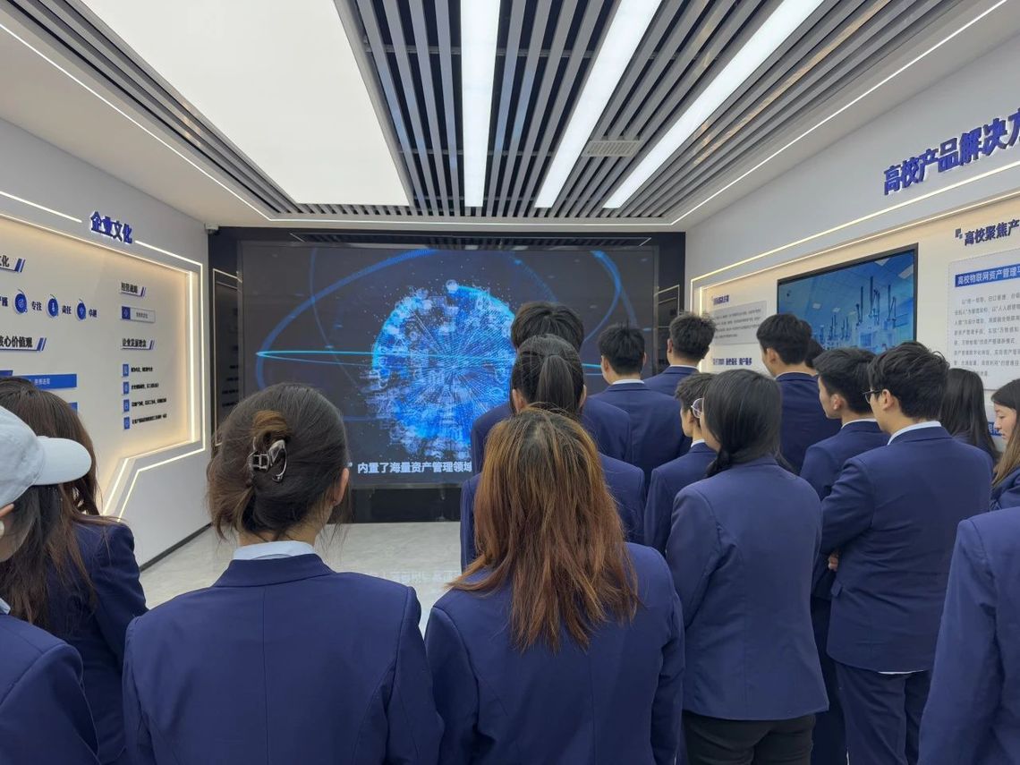 在山东国子软件股份有限公司,学员们参观了公司的研发中心、办公环境和产品展示区。在研发中心,技术人员介绍了公司在人工智能和大数据领域的最新研究成果,包括智能算法、大数据分析平台等,让学员们近距离感受到了科技的魅力与力量。在产品展示区,学员们看到了公司自主研发的一系列创新产品,如感知终端系列产品、智能服务机器人等。在与公司员工的交流环节,公司员工结合工作经验,围绕人工智能、大数据等行业趋势、技术应用等方面分享了宝贵的行业见解和职业发展建议,学员们受益匪浅,有了新的认识和见解。