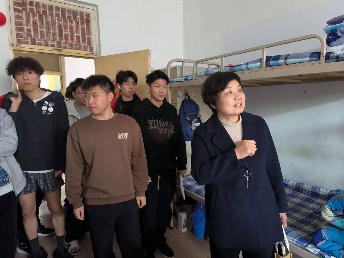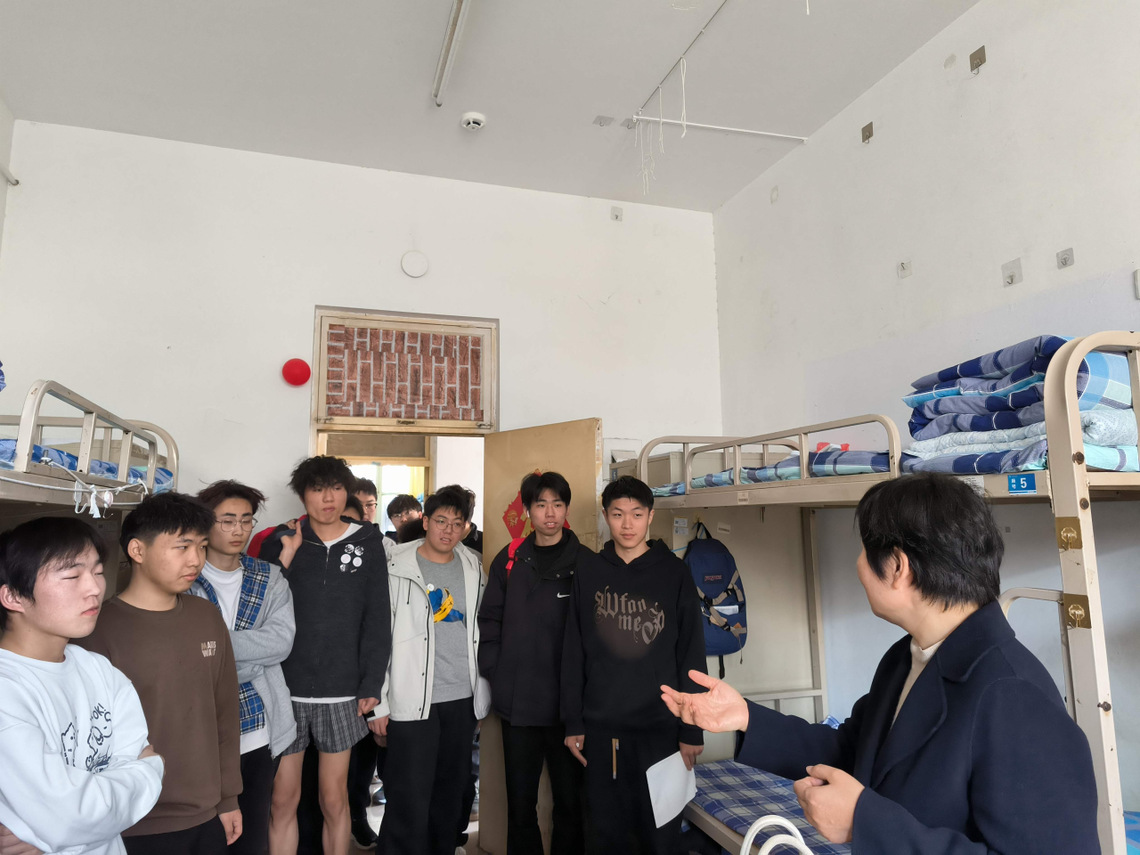 宿舍内,王红围绕思想引领、学业规划、宿舍环境、安全教育等话题与学生展开交流。她勉励学生坚定理想信念,夯实专业基础,争做新时代数字技术领域的“追光者”;同时要求同学们重视宿舍安全,防盗、防骗、防火、防电,倡导大家共同维护好宿舍环境,打造一个温馨健康的宿舍,形成良好的宿舍文化。