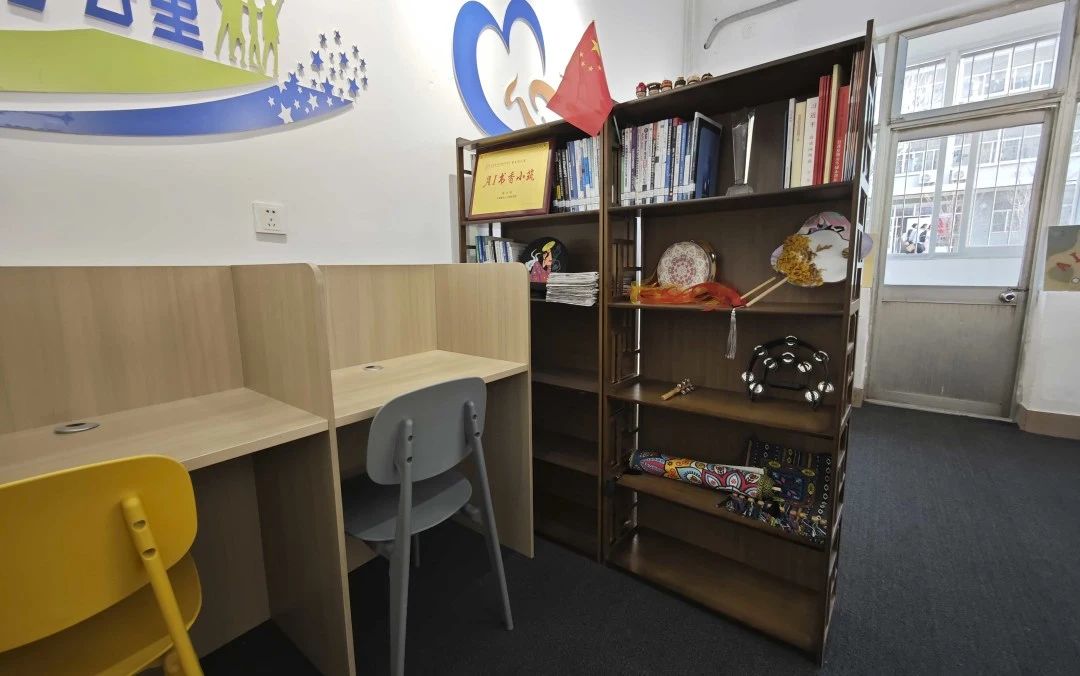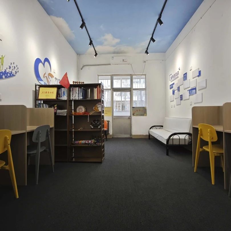 “e智雅苑”设立于5号公寓一楼,其中包括民族之家、“AI书香小筑”、自习空间、心灵驿站等功能区,是一处集阅读、休闲、交流多功能于一体的文化区域。空间内拥有书籍100余册,涵盖计算机专业、办公软件教学等多个领域;同时,室内打造8个独立自习隔断,预约座位,方便快捷。该社区以智慧化场景拓展育人维度,构建浸润式文化育人阵地,助力学生德智体美劳全面发展。