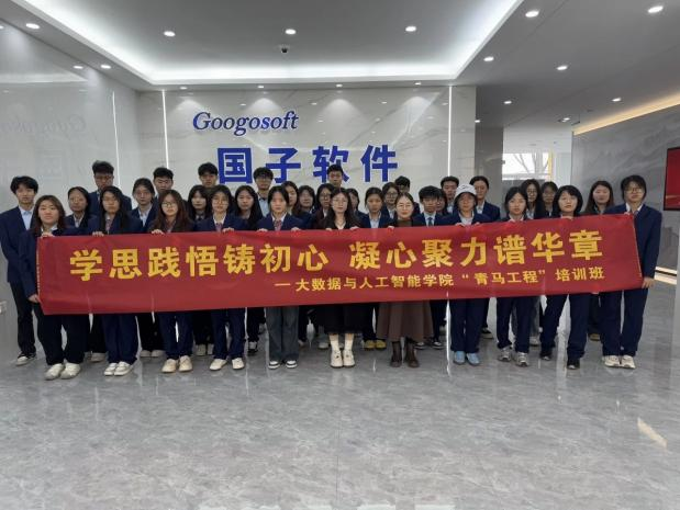 近日,为进一步推动实践育人工作走深走实,引导青年学子在社会实践中受教育、增本领、长才干;大数据与人工智能学院党总支书记王红、团总支书记李海彬、辅导员李荣辉以及“青马工程”培训班学员代表,一同奔赴山东国子软件股份有限公司,开启了一场以“学思践悟铸初心 凝心聚力谱华章”为主题的青马工程“访名企”之旅。
