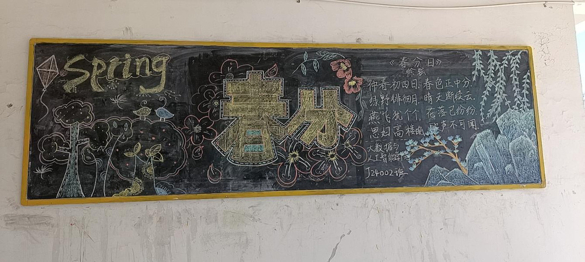 为积极响应自然和谐理念,引导学生体悟时节变化之美,强化学生顺应天时、尊重自然的生态意识,大数据与人工智能学院精心设计了春分主题板报。