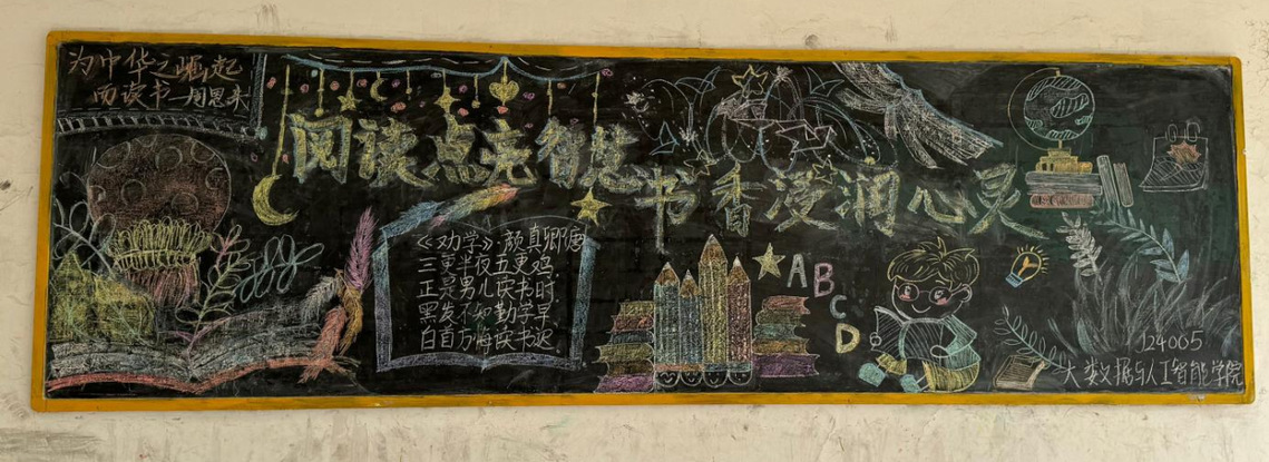 为大力弘扬书香文化,引导学生领略阅读世界的广阔与深邃,强化学生对知识海洋的探索与追求意识,大数据与人工智能学院精心设计了“阅读点亮智慧,书香浸润心灵”主题板报。