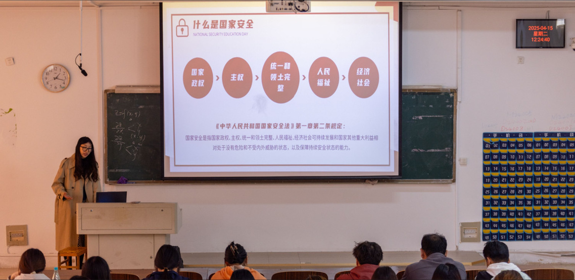 2025年是《中华人民共和国国家安全法》颁布施行10周年,在4月15日第十个全民国家安全教育日当天,为引导广大团员青年领会总体国家安全观的思想内涵,深刻认识国家总体安全观在实践中的指导价值,我院开展了一场以“国家安全 你我有责”为主题的团课,本次团课由辅导员杨晓慧主讲,2023级团员代表及2024级入团积极分子参加。