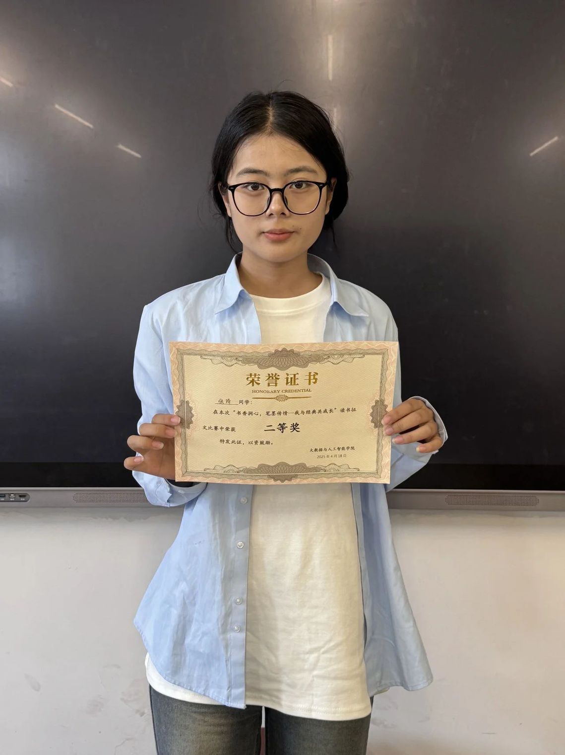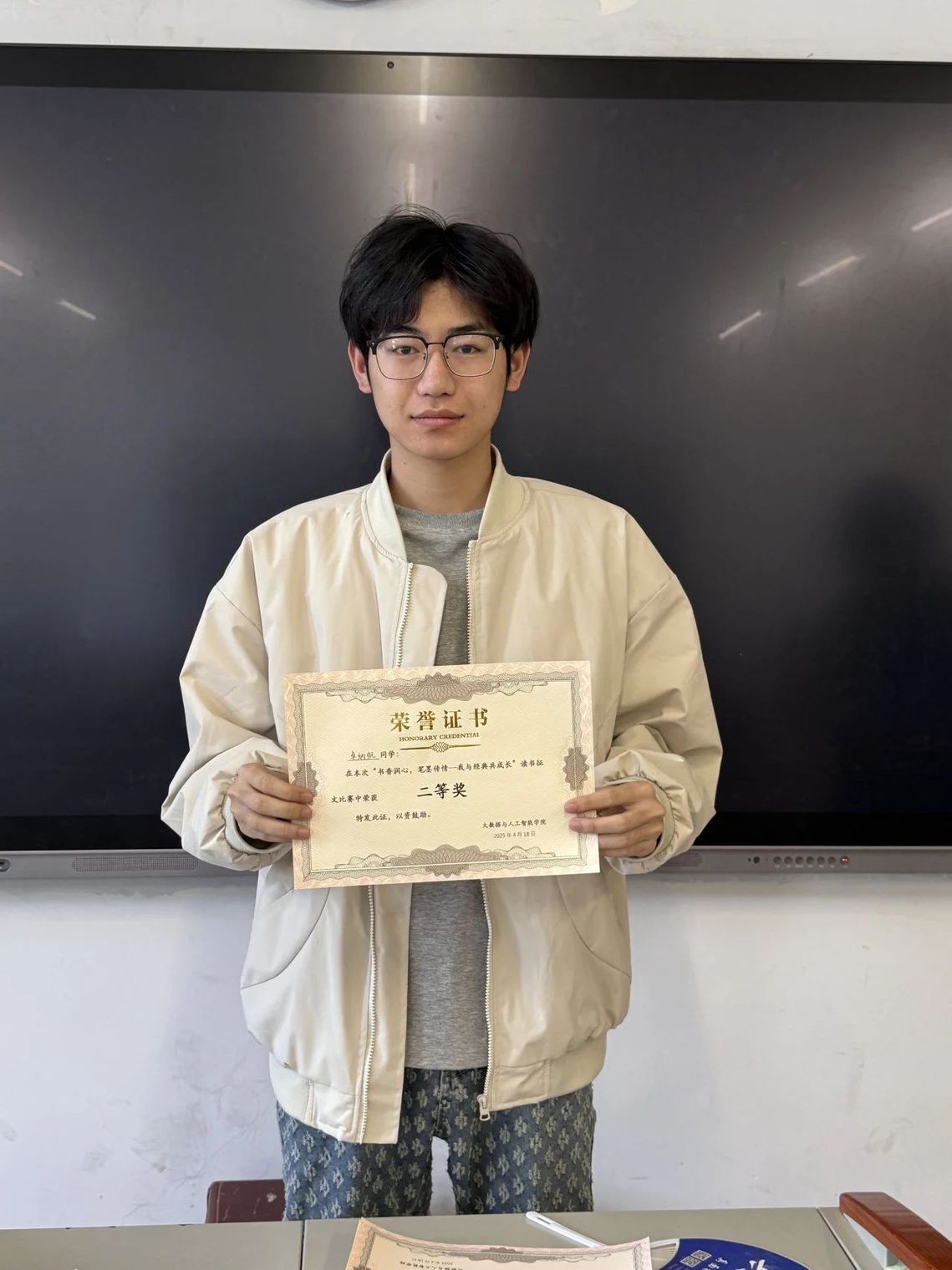 二等奖的荣誉则花落J2400735卓炳帆、J2401341宫一泽、J2401505田馨怡、J2401317孙智玄、J2400935张琦五位同学。他们的作品风格各异、特色鲜明,有的以细腻笔触精心描绘经典中的人物形象,让角色跃然纸上;有的则从宏观层面深入探讨经典作品所产生的深远影响,展现出对经典全面且深刻的理解,犹如一幅幅绚丽多彩的画卷,在经典的长河中徐徐展开。