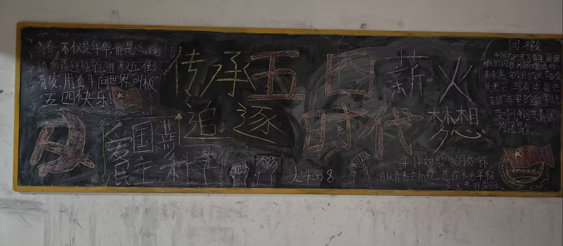 为传承五四精神的灼灼薪火,引领同学们在奋斗征程中锚定前行方向,在时代浪潮里勇立青春潮头,让理想如星辰照亮逐梦之路,让热血在拼搏奉献中澎湃激昂,大数据与人工智能学院精心设计了以 “传承五四薪火,追逐时代梦想” 为主题的板报。