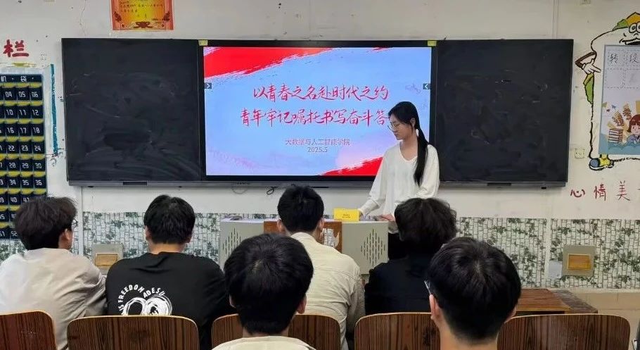 为激励青年勇担时代使命,深入学习贯彻时代嘱托,5月6日大数据与人工智能学院开展了“以青春之名赴时代之约,青年牢记嘱托书写奋斗答卷”主题团课活动,各班积极响应,共赴这场意义非凡的青春之约。