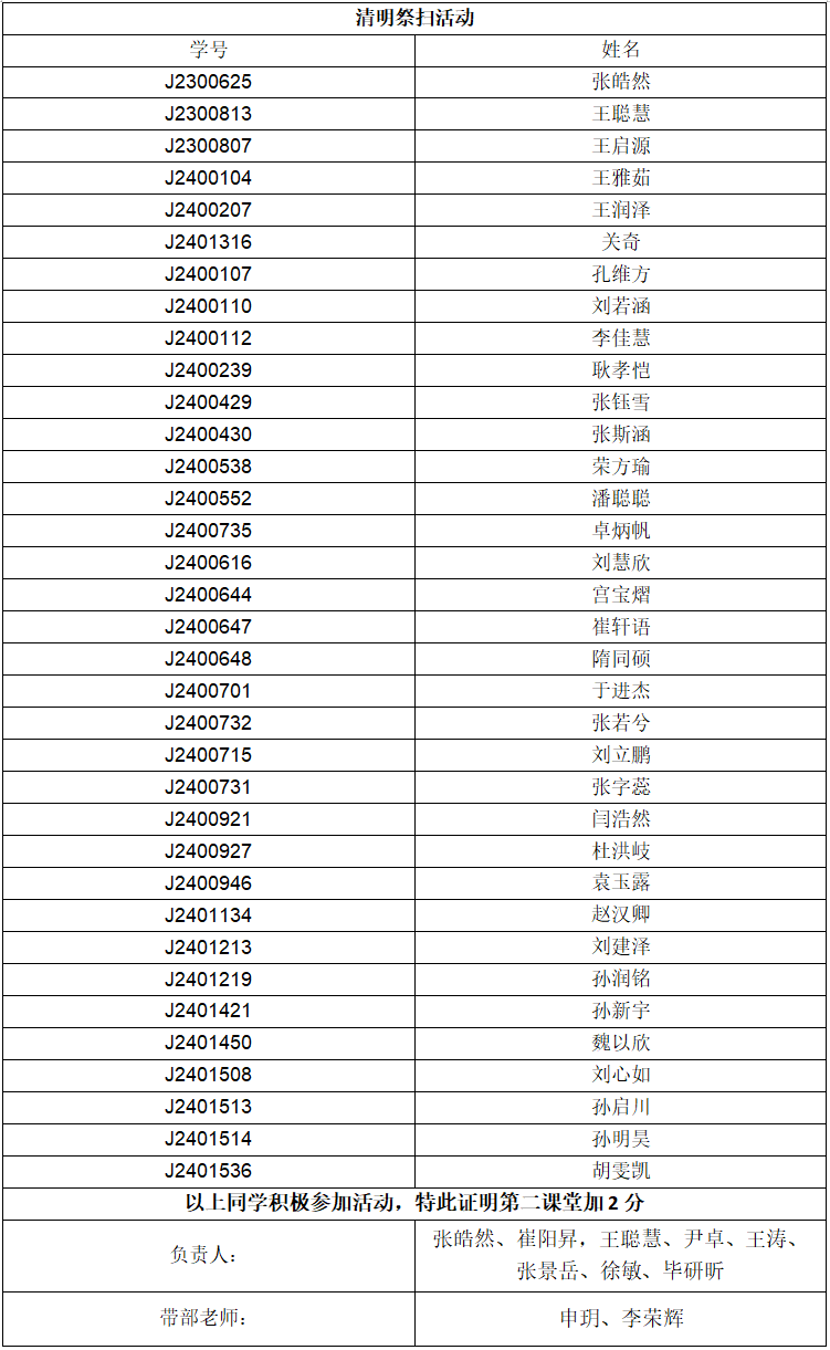 在四月的春风里,同学们的每一份努力都似熠熠星辰,照亮前行的路,每一次付出都如潺潺细流,汇聚成梦想的海洋。在四月精彩纷呈的校园活动中,同学们以满腔热忱投身其中,用汗水与智慧书写青春华章。现将四月份各活动第二课堂加分名单予以公示,让我们一同见证这些闪耀的青春光芒。