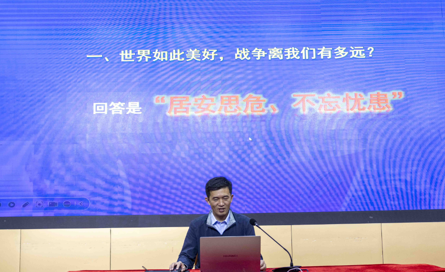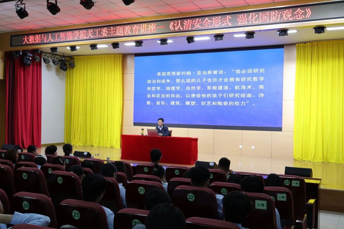 居安思危,思则有备。在国际形势复杂的当下,增强国防安全意识已成为新时代青年的必修课。5月16日,大数据与人工智能学院在学术报告厅举办龙泉讲坛暨国防安全教育主题讲座,特邀退役军官尹传刚同志作题为《认清安全形势,强化国防观念》的专题报告。学校关心下一代工作委员会办公室主任高晓晶,团委书记崔璀,大数据与人工智能学院相关负责人及各系辅导员与300余名学子共同聆听,现场座无虚席。