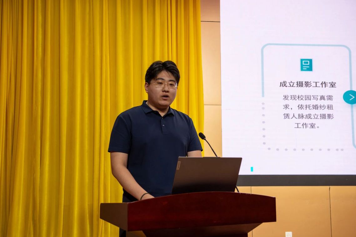 毕业生代表杨佳鹏分享了自己运用VR技术创业(婚纱虚拟试纱平台)的宝贵经历。他建议学弟学妹勇于探索跨界融合技术,重视实践验证,拥抱挑战、持续学习,将知识转化为创造价值的能力。