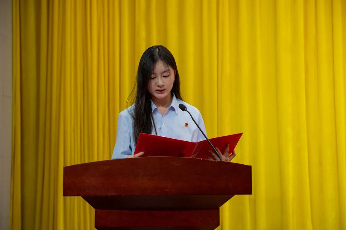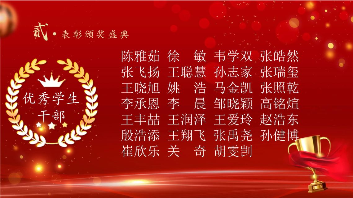 刘毅、申玥、冯铭伟、杨晓慧、李荣辉依次登台,宣读青春榜样、卓越榜样、先进榜样、风采榜样、担当榜样名单。随后王红、孙艳婷、李燕分别为榜样代表颁发荣誉证书,现场掌声此起彼伏,传递着对榜样的钦佩与向先进看齐的决心。 颁奖环节后,榜样代表王涛及王雅茹分别发言,号召同学们以“求真达善,致知力行”的校训为指引,将理论付诸实践,实现知行合一。
