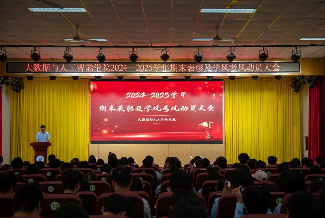 6月13日,大数据与人工智能学院在学术报告厅举行2024-2025学年期末表彰及考风学风强化提升大会。我院党总支书记王红、综合科科长孙艳婷、教学科科长李燕、全体辅导员及教师、学生代表参加了会议,会议由李荣辉主持。此次大会旨在表彰先进、树立典型,同时进一步加强考风学风建设,营造严谨求实、奋发向上的学习氛围,激励全院师生以更加昂扬的姿态迎接新的挑战。