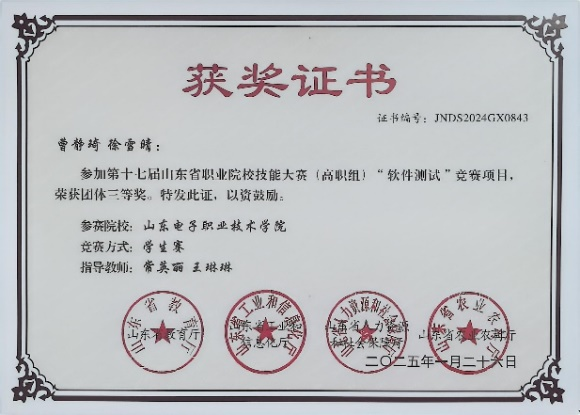 软件技术专业育人成效显著,为社会输送了大批优秀的信息技术人才,部分毕业生已成长为企业的中坚力量和领军人物。学生在校期间参加全国及全省各类职业技能大赛获奖60余项,其中“山东省大学生软件设计大赛”特等奖2项、“全国大学生软件测试大赛”特等奖3项,“中国软件杯”大学生软件设计大赛获奖5项,全国及全省职业院校技能大赛获奖10余项,被授予“山东高校十大优秀学生”1人。本专业学生的专升本率始终保持在学院前列。(大数据与人工智能学院 图文:大数据与人工智能学院)