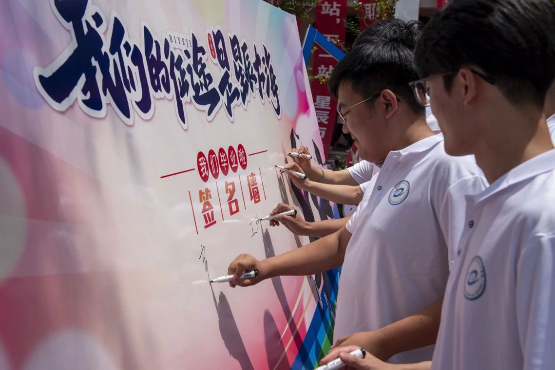 签名墙与祝福墙,毕业生用笔尖轻轻勾勒出对母校的深深眷恋,写下对未来的美好憧憬与对同窗的深情祝福。每一笔都是对这段青春岁月最真挚的告别和铭记。
