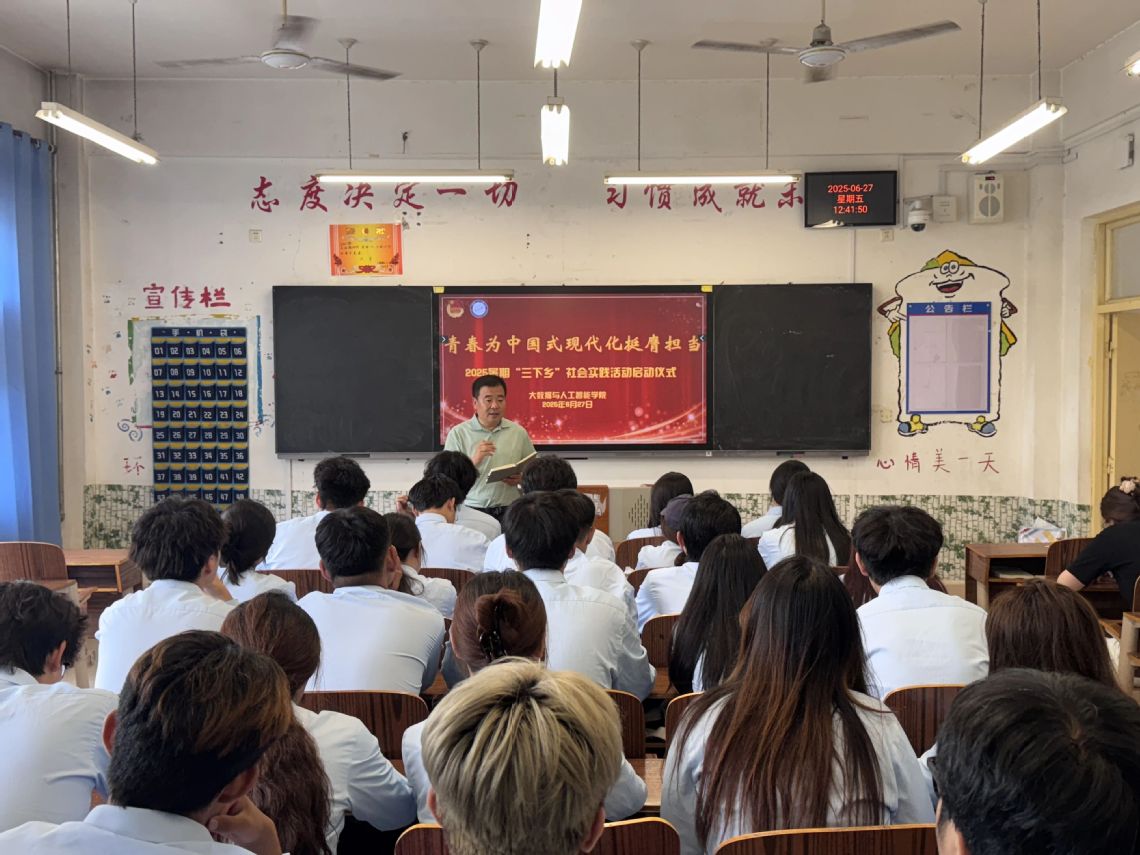 为引导青年学子在社会课堂中受教育、长才干、作贡献,深入落实乡村振兴战略,推动大学生社会实践与基层需求深度融合,6月27日,我院于2202教室举办以“青春为中国式现代化挺膺担当”为主题的2025年暑期“三下乡”社会实践活动启动仪式。团总支书记李海彬、辅导员代表及各班班长、团支书等社会实践学生代表参会。