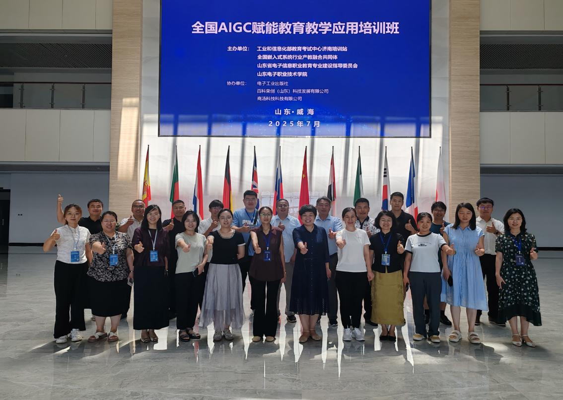 7月28日至31日,由工业和信息化部教育考试中心济南培训站、全国嵌入式系统行业产教融合共同体、山东电子职业技术学院等主办,计算机与软件工程系承办的“全国AIGC赋能教育教学应用培训班”在威海山东外事职业大学圆满落幕。安徽职业技术学院等省内外30余位职业院校骨干教师参加培训,共同探索AIGC技术在教育领域的创新应用,推动教育教学模式变革与人才培养质量提升。