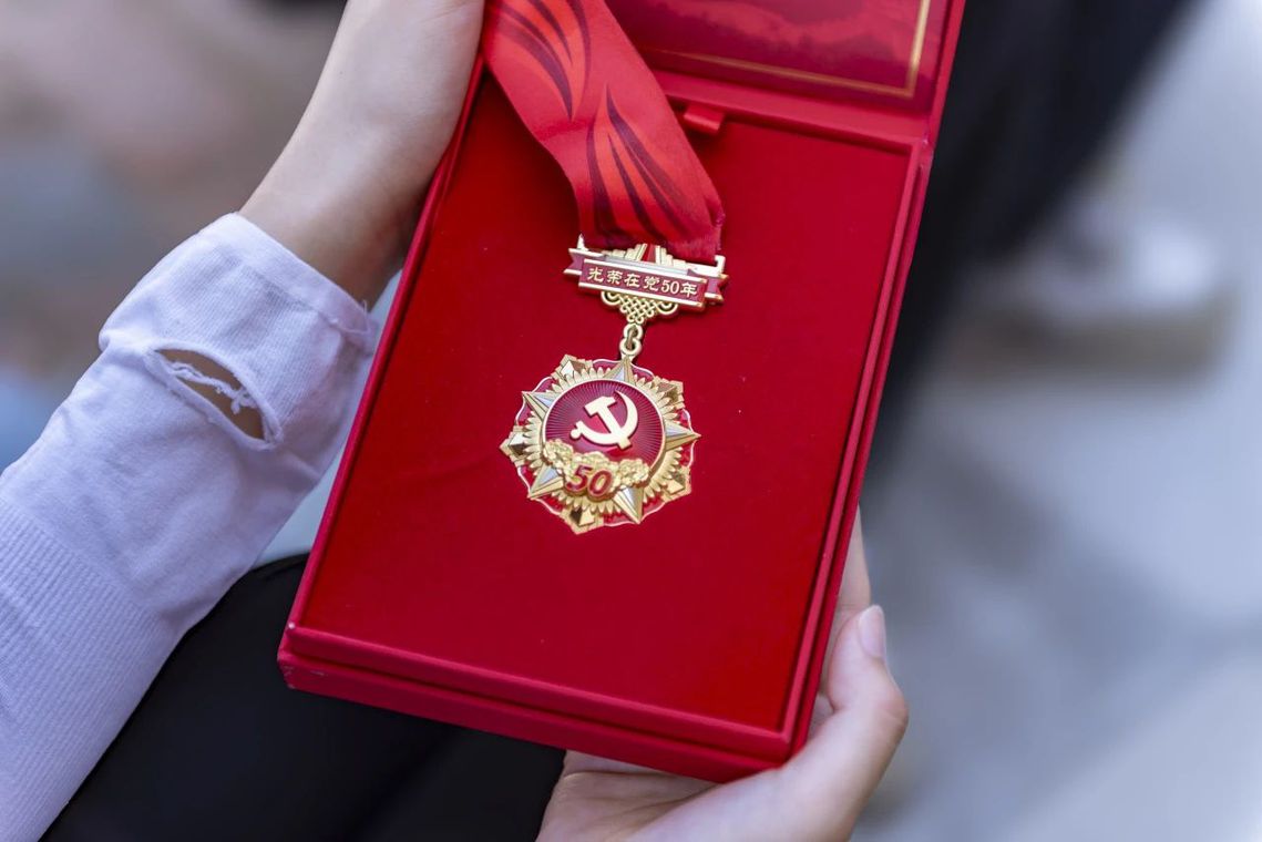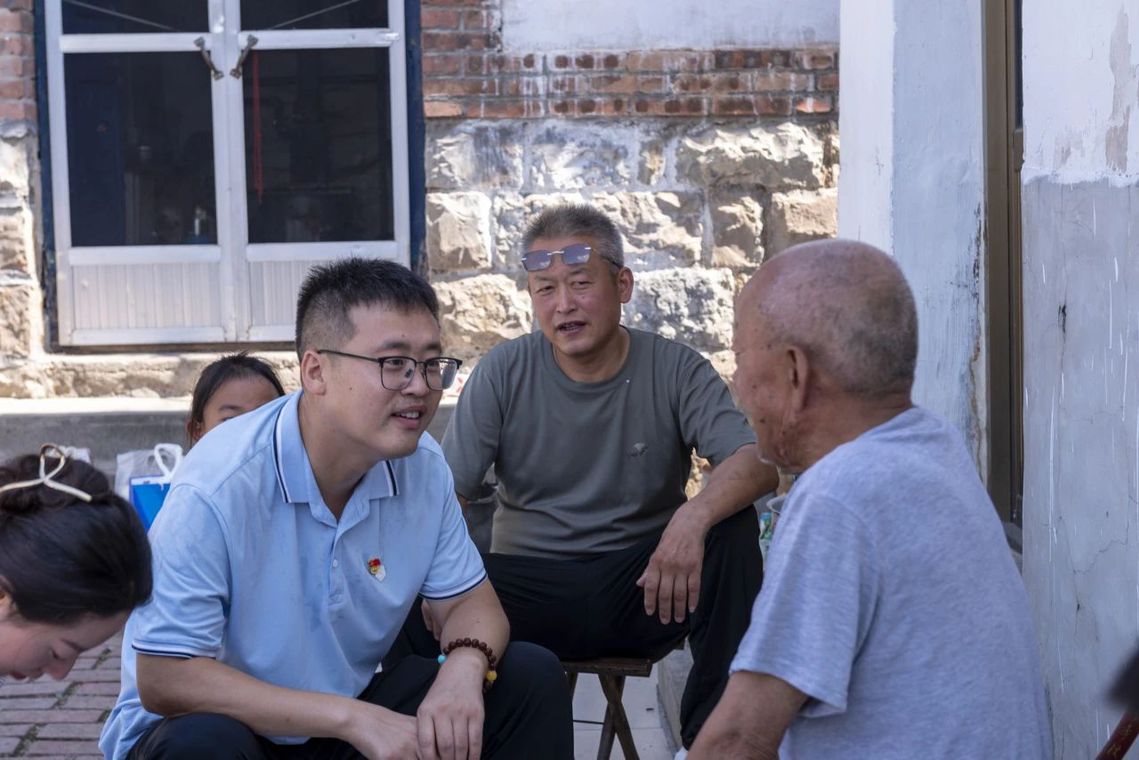 聂振江作为村委代表,向调研团详细介绍了阚金生同志的光荣事迹,83岁的阚金生有着54年党龄,曾担任聂家峪村村支部书记二十余年。任职期间,他带领村民积极投身生产队建设,时刻紧跟国家三农政策步伐,为村庄发展倾注大量心血。虽已年迈,他依然初心不改,用半个多世纪的党龄见证时代变迁。与调研团成员交谈时,他郑重展示入党50周年纪念章,用亲身经历讲述奋斗故事,激励青年学子奋发图强,生动诠释了一名共产党员的责任与担当。