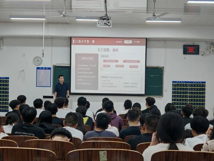秋色映校园,启航正当时。新学期伊始,为助力2025级新生快速融入大学生活、筑牢安全思想防线、明晰成长发展方向,我系精心组织全体新生开展“开学第一课”主题班会。新生辅导员提前深耕备课,以丰富的内容与多样的形式,为新生的大学旅程点亮启航明灯。
