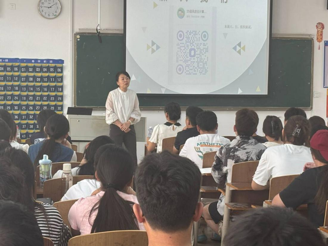 为帮助2025级新生快速融入大学生活、明晰专业方向与发展前景,9 月 2 日 13:00-14:00,在 2115 教室,计算机与软件工程系举行了云计算技术应用专业新生入学教育活动。本次活动以“数智领航,云塑未来” 为主题,由专业教师张伟丽主持,专业负责人董蕾、教师王蒙及 2025 级全体云计算技术应用专业新生共同参与,“中国软件杯” 获奖团队代表现场分享,为新生开启专业学习的 “第一课”。
