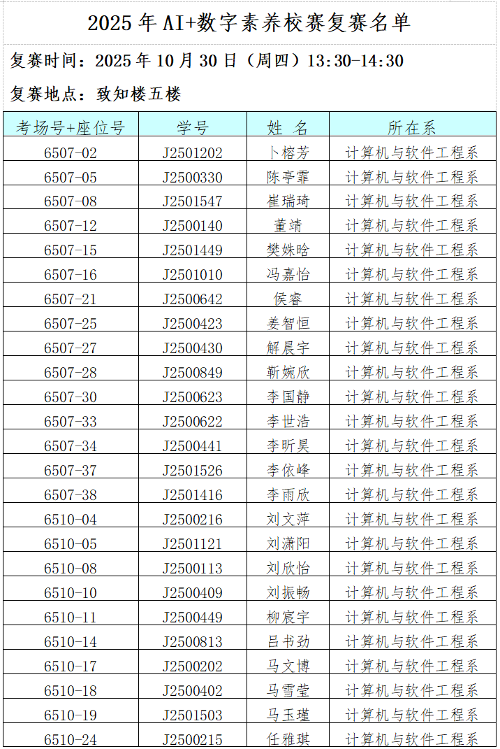 请所有晋级学生提前准备好完美校园校园码,以便入场时进行身份核验,确保参赛流程顺畅。预祝各位学子在复赛中再创佳绩,展现过硬的数字素养与AI应用能力!