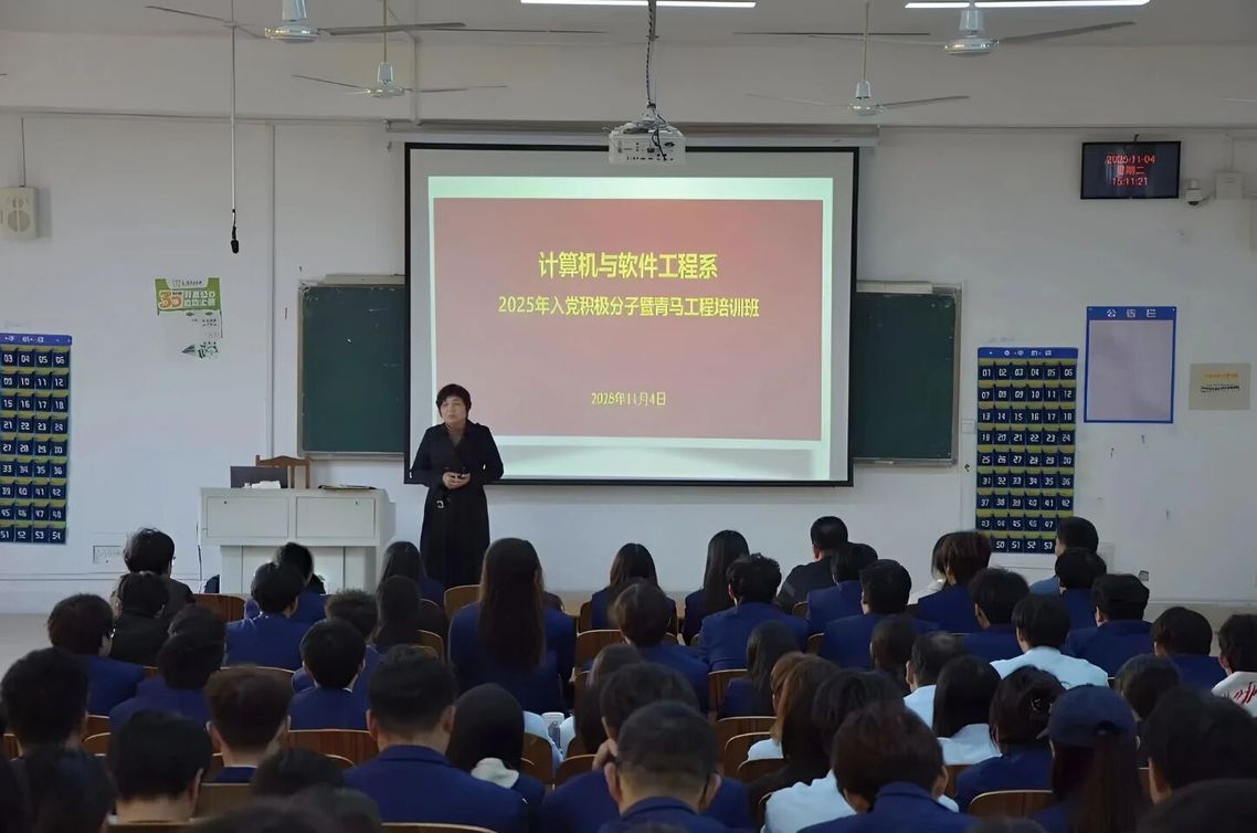 为深入学习贯彻党的重要思想、落实党章规定、提升入党积极分子综合素养,11月4日,计算机与软件工程系党总支书记王红以“坚定理想信念,锤炼过硬本领,争做担当民族复兴大任的时代新人”为题,为计算机与软件工程系、智能制造工程系全体入党积极分子讲授专题党课。