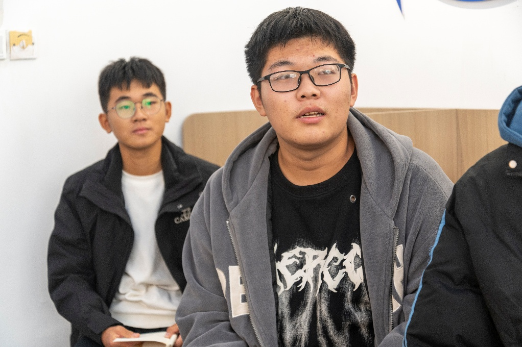 会上,王红围绕两大主题与新生深度交流,精准回应不同需求。一方面面向全体新生,聚焦入学适应、专升本规划、“1412”师生创育项目参与度、心理安全四个维度,通过细致沟通掌握学生现状,既提供针对性学业指导、鼓励以练促学,又为学生搭建心理支持防线;另一方面,针对2025级“3+2”学生与夏考学生混合编班情况,进行专项座谈。同学们普遍反映已快速融入集体,形成课堂互助学习、课后交流探讨的良好氛围,混合编班育人优势初显。