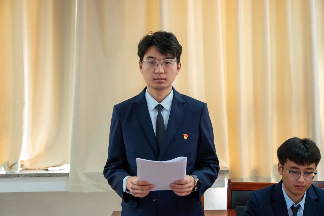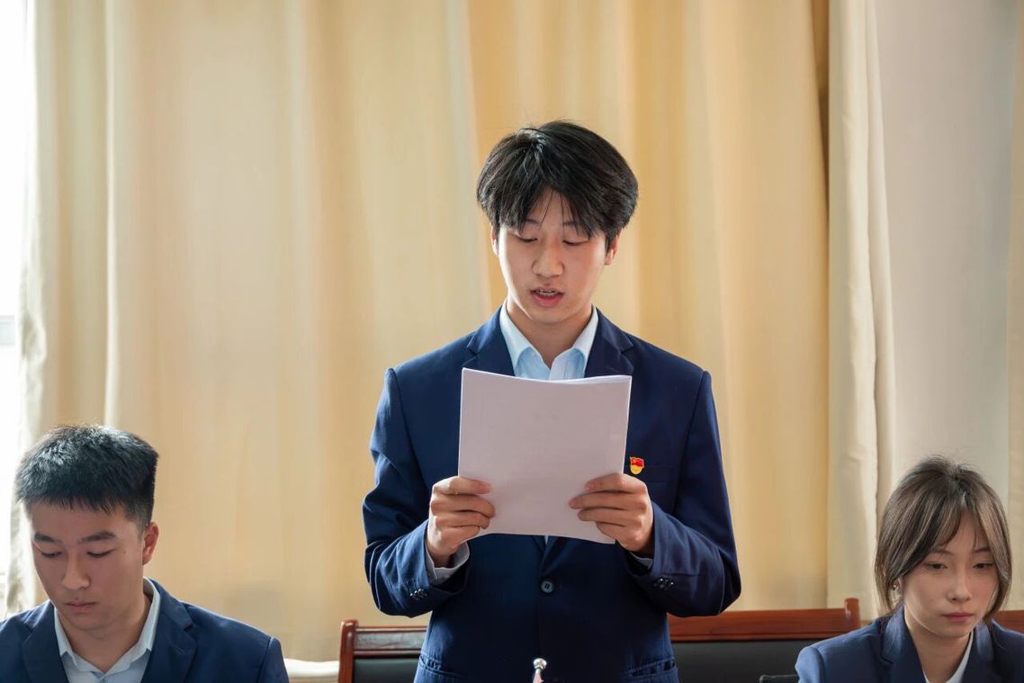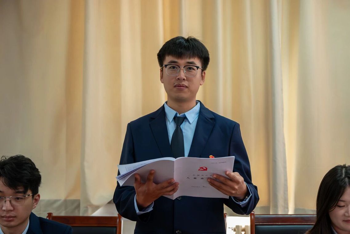 大会最后,学生党支部书记李海彬向新晋预备党员表示祝贺,叮嘱同志们铭记此次大会这一特殊的 “政治生日”。他勉励大家珍惜党员身份,将忠诚内化于心、担当外化于行、规矩落实于细,在学习与工作中充分发挥先锋模范作用,以青春之力为实现中华民族伟大复兴的中国梦贡献力量。