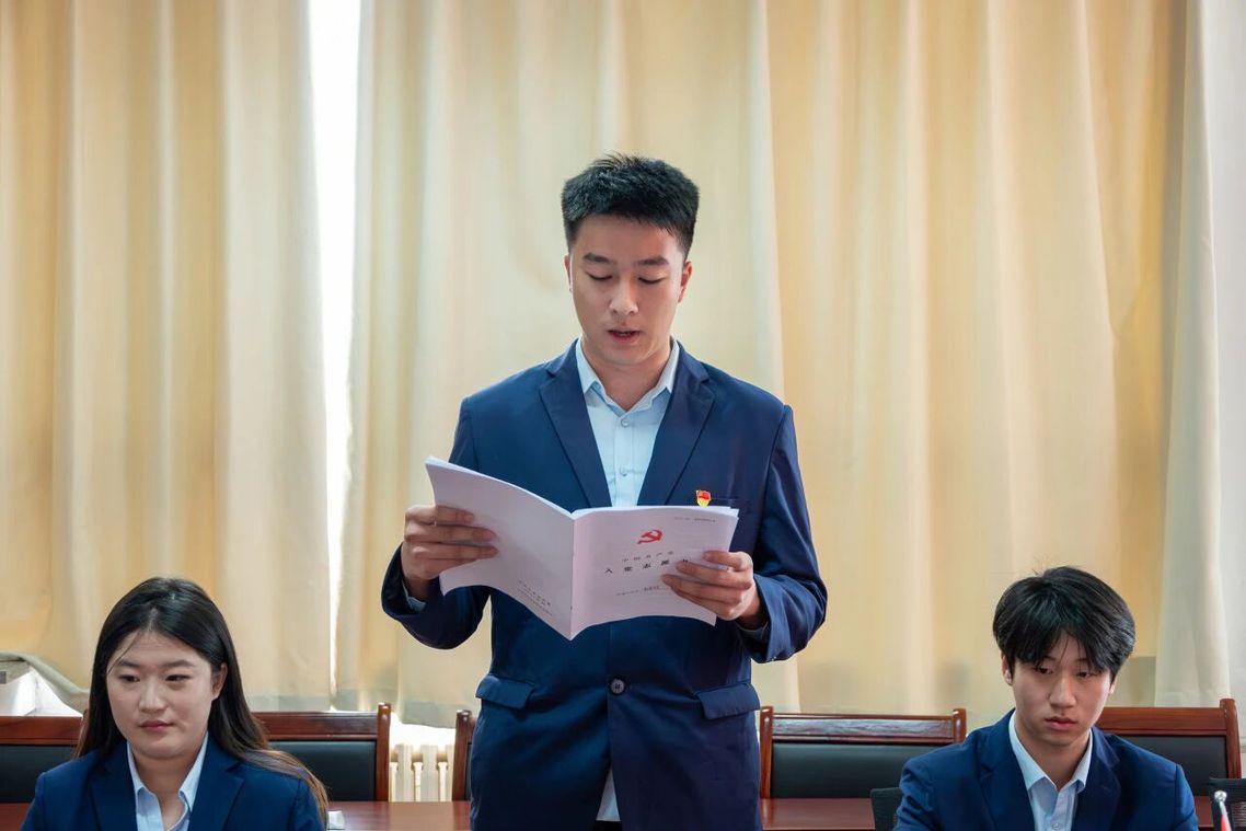 会议伊始,李荣辉介绍了本次大会党员的出席情况,随后严格依照党员发展程序推进各项议程。首先,由7名发展对象依次宣读《入党志愿书》,既系统汇报了自身在思想觉悟、学习成效、工作实践方面的成长进步,也坦诚剖析了存在的不足,同时以坚定态度表达了加入中国共产党的强烈意愿。接着,各发展对象的入党介绍人分别介绍其培养考察情况,明确阐述了对其能否入党的意见。经支部大会充分讨论后,支部拥有表决权的正式党员以无记名投票方式进行表决,最终全体党员一致同意,决定接收毕研昕等7名同志为中共预备党员。