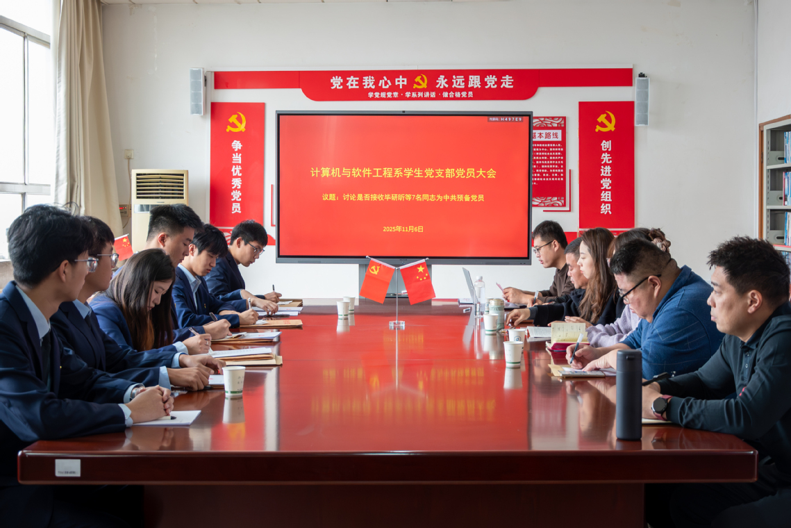 为进一步强化基层党组织建设、充实党的新生力量,11月6日,计算机与软件工程系学生党支部在504召开接收预备党员大会,专题讨论并表决是否接收毕研昕等7名同志为中共预备党员。大会由学生党支部组织委员李荣辉主持,学生党支部全体党员参加会议。