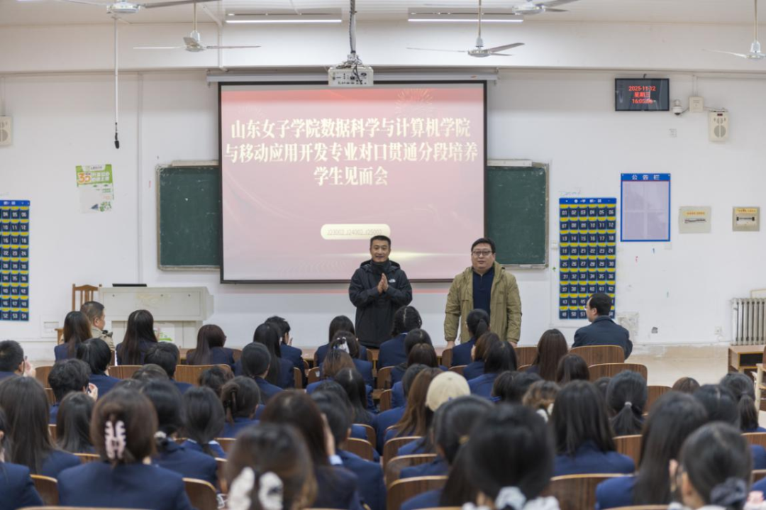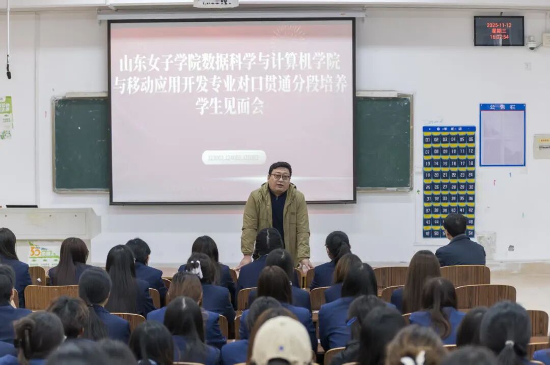 为扎实推进对口贯通分段培养有效衔接,助力学生明晰本科阶段发展路径,11月12日,我系特邀山东女子学院数据科学与计算机学院副院长季振东、软件工程教研室主任李彦聪,为移动应用开发专业对口贯通分段培养学生举办师生见面会。我系主任王新新、团总支书记李海彬共同参会,共同探讨贯通培养的新篇章。