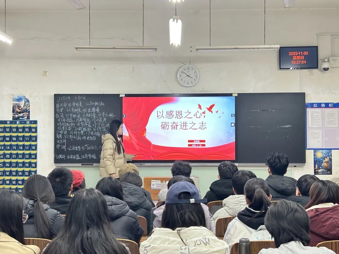 团课开篇,各班团支书系统阐释感恩的核心要义与深层意蕴,援引“滴水之恩,当涌泉相报”千古名句,阐明感恩既是中华民族赓续千年的精神血脉,更是新时代青年修身立德的价值根基,各班团支书以情感共鸣为纽带,串联父母朝夕照料的温情、师长春风化雨的教诲等身边场景,同时融入志愿服务的无私奉献、社区互助的守望相助等时代故事,用“小切口”传递“大情怀”,让价值引领更具感染力与穿透力。这些微末善举既能传递滚烫真情,更能锤炼道德修为、涵养家国情怀,照亮人生奋进之路。