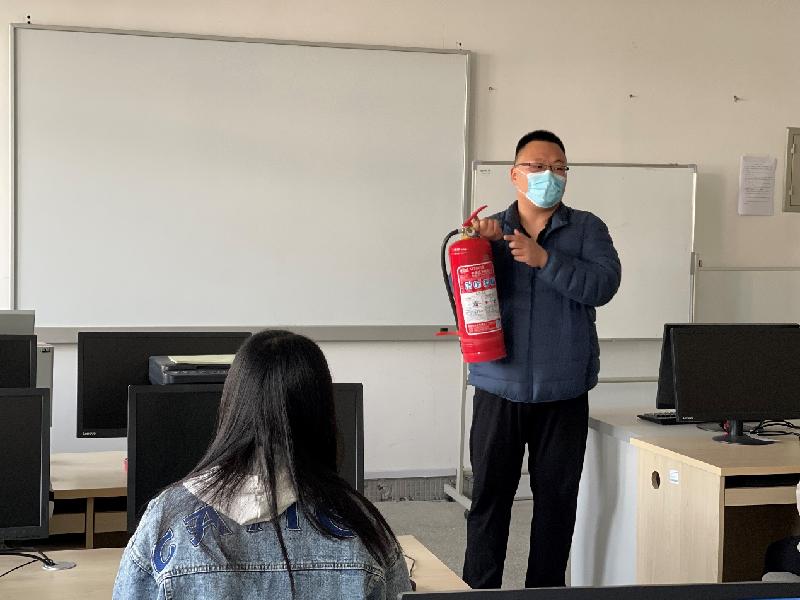 2021年11月15日应急防火演习开始,首先由王崑剑老师宣讲应急防火逃生所需要注意的情况,要做到不慌不乱,保持镇定,迅速判断危险源。快速远离危险源,撤离火场。同学们在逃离火场过程中应尽量弯腰躬行,排成一排沿墙前行。用可采用毛巾、口罩蒙鼻以防被烟雾呛到。