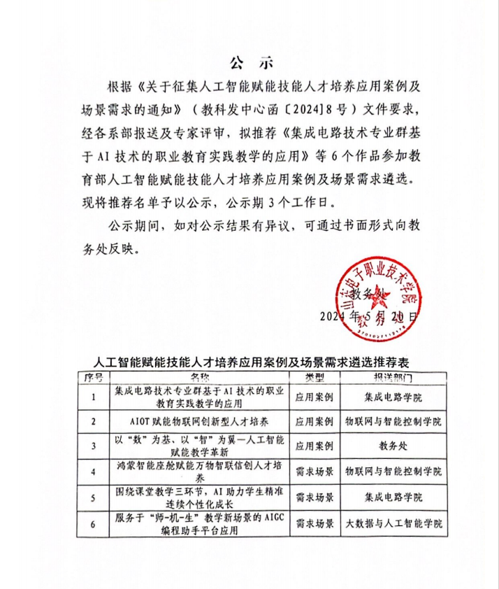 关于人工智能赋能技能人才培养应用案例及场景需求遴选的公示