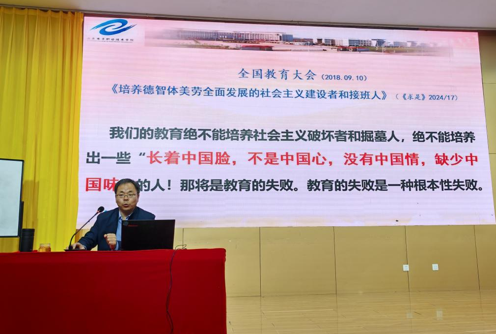 11月21日下午,我校思想政治课教学部在学术报告厅举行“聚焦访谈式实践育人 全面推进大思政课建设”专题讲座,院长张建臣出席讲座,教务处、学生工作处、团委、各二级学院教师代表参加。
