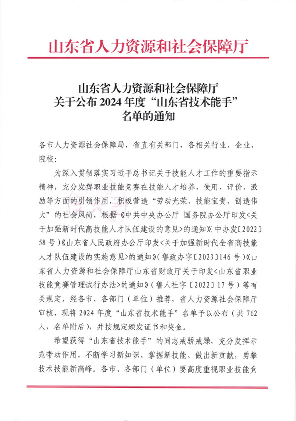 近日,山东省人力资源和社会保障厅公布了2024年度“山东省技术能手”名单,我校共有7位教师获此殊荣,在全省高职院校中位居第4。其中。大数据与人工智能学院张雪华、杜柠老师,数字商务学院刘林老师,数字创意学院王一如、冯秀亭老师以及数字安全学院的李成铖、杜玉红老师凭借扎实的专业技能脱颖而出,荣获“山东省技术能手”荣誉称号。