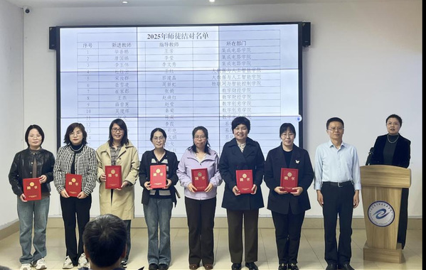 计算机与软件工程系王红老师与电子与通信工程系毕善鹏老师分别代表指导教师与新进教师登台发言。王红表示,作为教学领路人,将全力扛起“传帮带”重任,从师德修养、业务能力等多方面为新教师保驾护航,助力其实现专业成长。毕善鹏表示,作为新进教师,将以谦逊好学的态度紧跟指导教师步伐,在教学实践中刻苦锤炼授课技巧、全面提升综合素养,努力成为合格的教育工作者。
