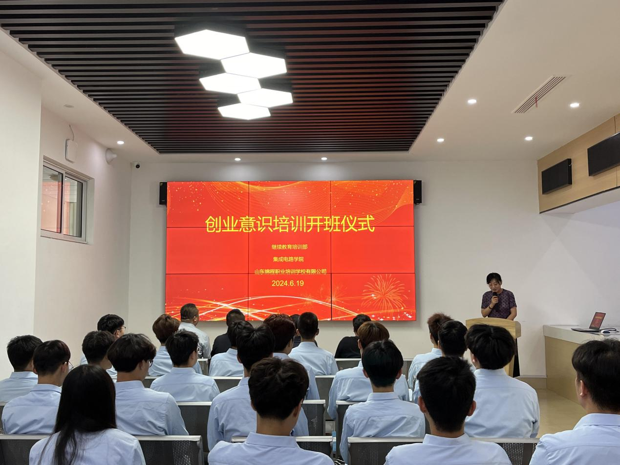 为帮助大学生增强创业意识,理清创业思路,学习创业技能,增强创业能力。近日,在继续教育培训部的大力支持下,集成电路学院与山东锦程职业培训学校有限公司展开合作,并正式召开开班仪式,仪式由集成电路学院团总支书记王宁主持,继续教育培训部主任王延武、集成电路学院党总支书记郭隆健、山东锦程职业培训学校有限公司代表朱广鹏和23级学生代表参加。