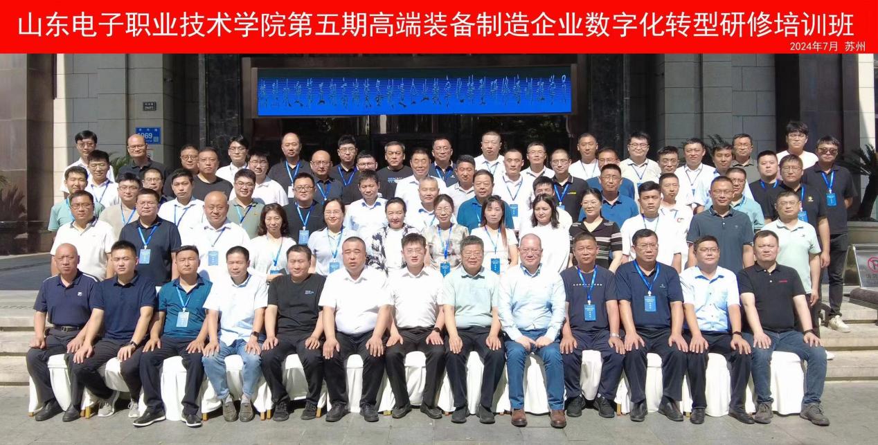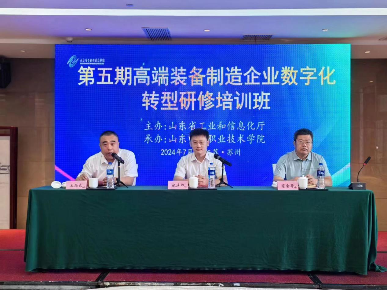 为加快推进装备制造业企业数字化转型,7月2日至5日,由山东省工业和信息化厅主办,山东电子职业技术学院承办的第五期高端装备制造企业数字化转型培训班在苏州举办。来自枣庄、济宁、临沂、日照、青岛、烟台、威海、潍坊等8个地市的装备制造类企业及区县工业和信息化局相关人员共90余人参加。省工业和信息化厅装备产业处副处长张泽坤,学校党委委员、副院长梁会亭出席开班仪式并致辞。