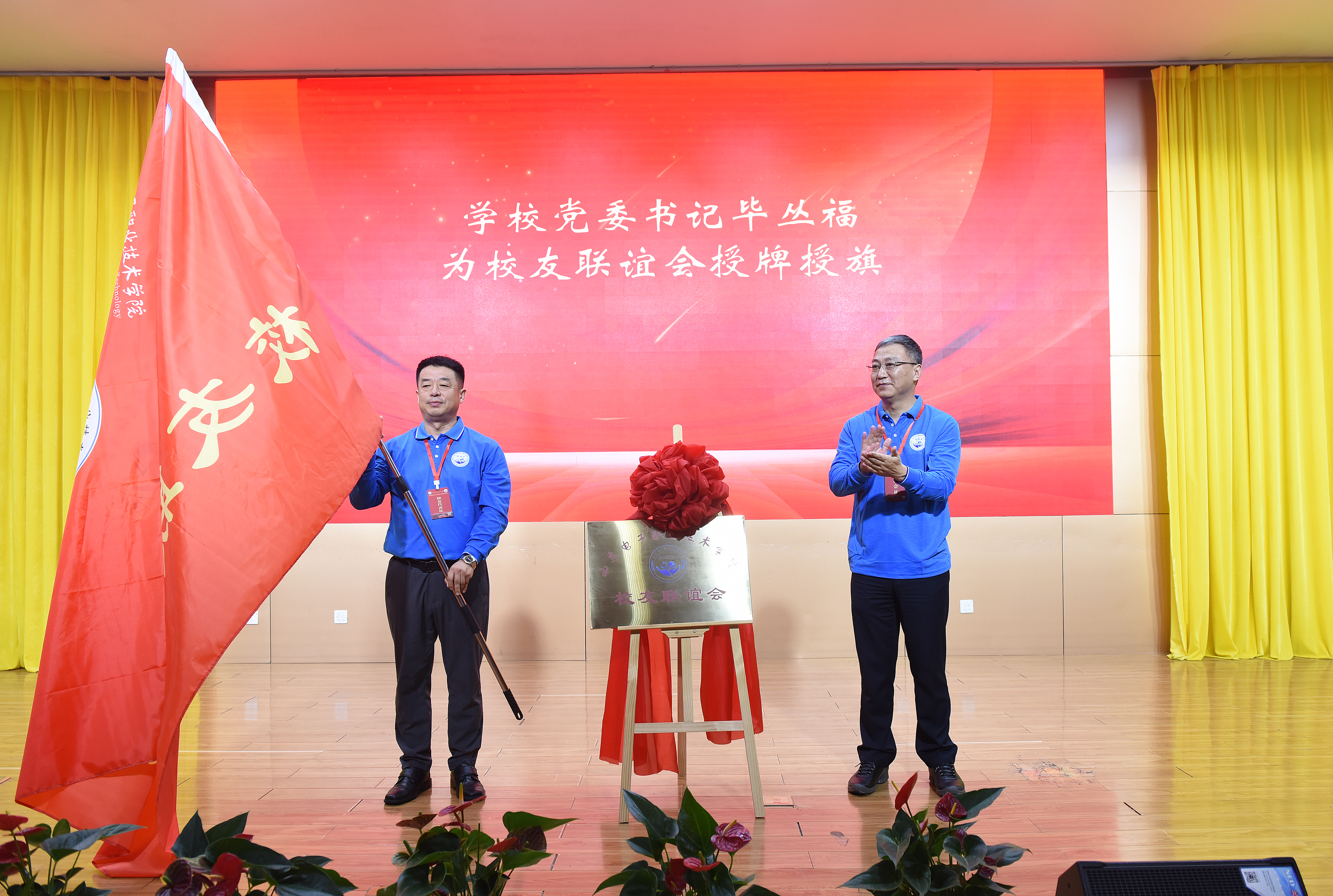随后,毕丛福书记与新当选的联谊会会长王培杰共同为联谊会揭牌。在热烈的掌声中,红绸缓缓揭开,联谊会牌匾熠熠生辉,标志着山东电子职业技术学院校友联谊会正式成立。