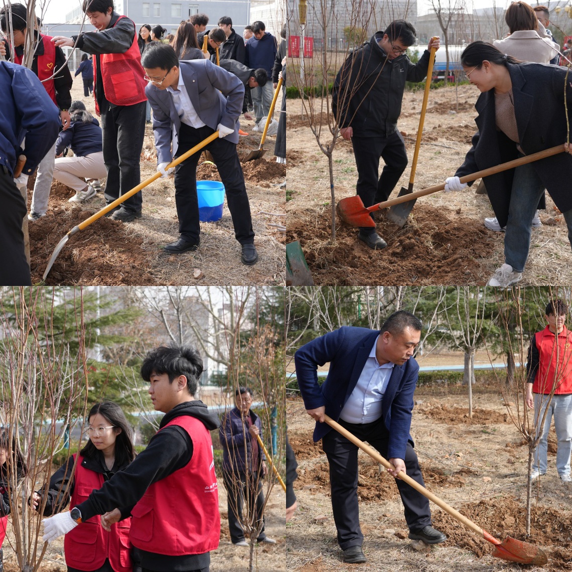 值此第47个植树节来临之际,3月12日下午,我校与校友企业山东小鸭控股集团有限公司、济南宇正电子科技有限公司在校友主题公园共同举办“校企融合添新绿,共育未来人才林”植树活动。山东小鸭控股集团有限公司党委副书记王梓楠、济南宇正电子科技有限公司总经理徐明宇、校友联谊会会长王培杰,学校党委委员、副院长李卫东,企业党员及学校师生代表100余人参加活动。