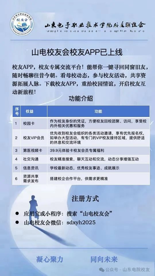 校友APP,校友专属交流平台!能帮你一键寻回同窗旧友,随时畅聊往昔今朝。看母校动态,参与校友活动,共享资源拓展人脉。下载校友APP,重拾校园情谊,开启校友互动新旅程!
