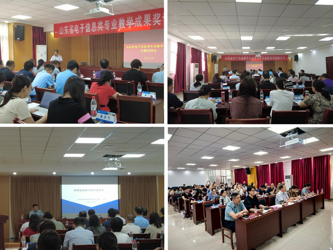 7月25日,由山东省电子信息教学指导委员会、山东省电子信息职业教育教学指导委员会、山东电子学会联合主办,山东电子职业技术学院承办的省电子信息类专业教学成果奖专题培训班正式启动。山东省职业技术教育学会会长石忠、山东省信息产业协会理事长曹茂永、山东省电子学会副理事长兼秘书长高暘、山东电子职业技术学院教务处处长张欣等参加开班仪式。培训历时一天,来自全省各高校的50余名电子信息类专业骨干教师参加。