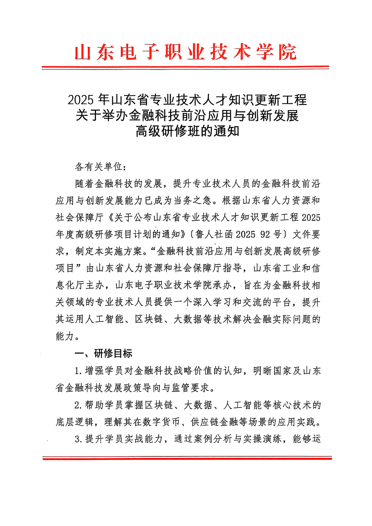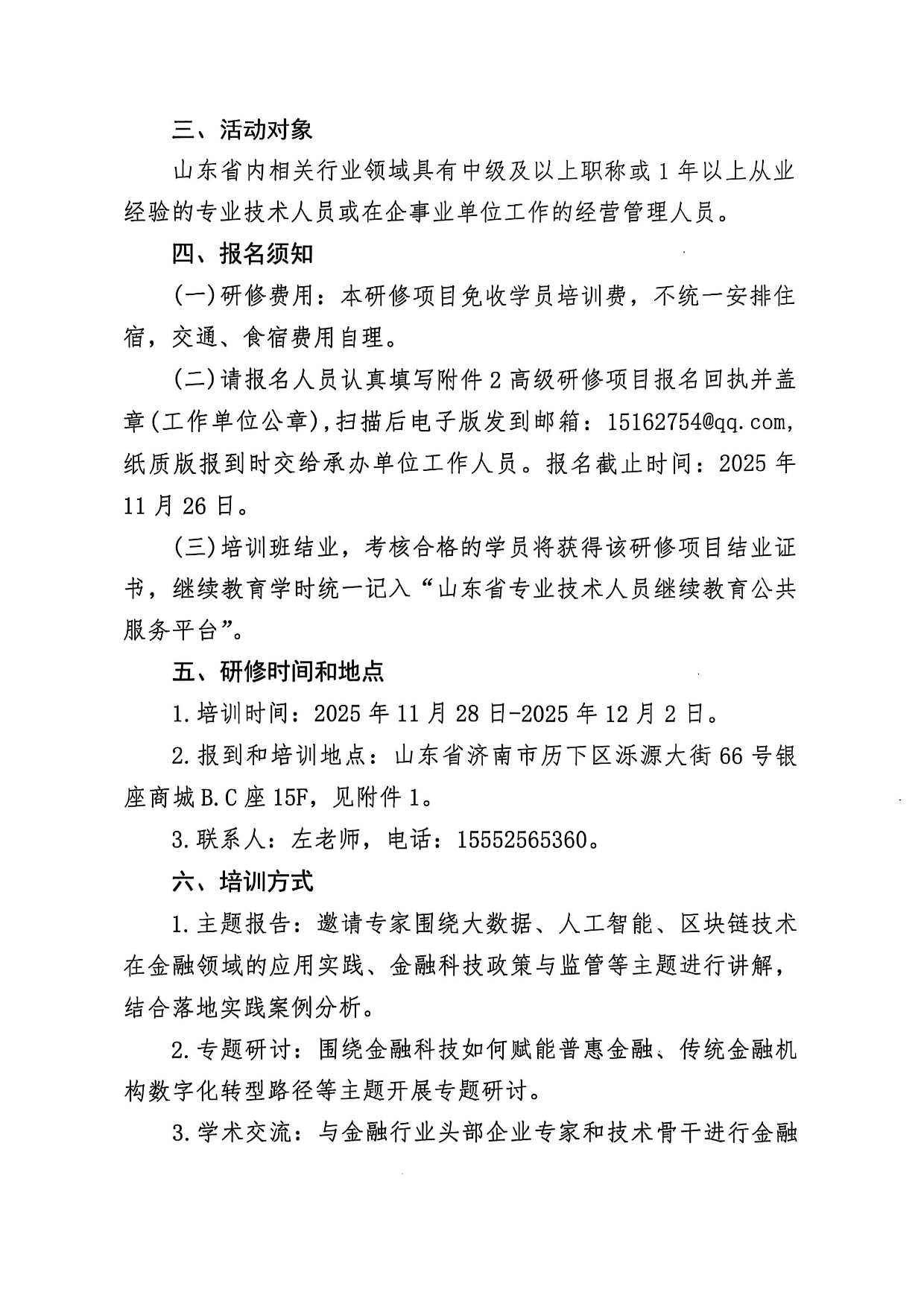 关于举办金融科技前沿应用与创新发展高级研修班的通知