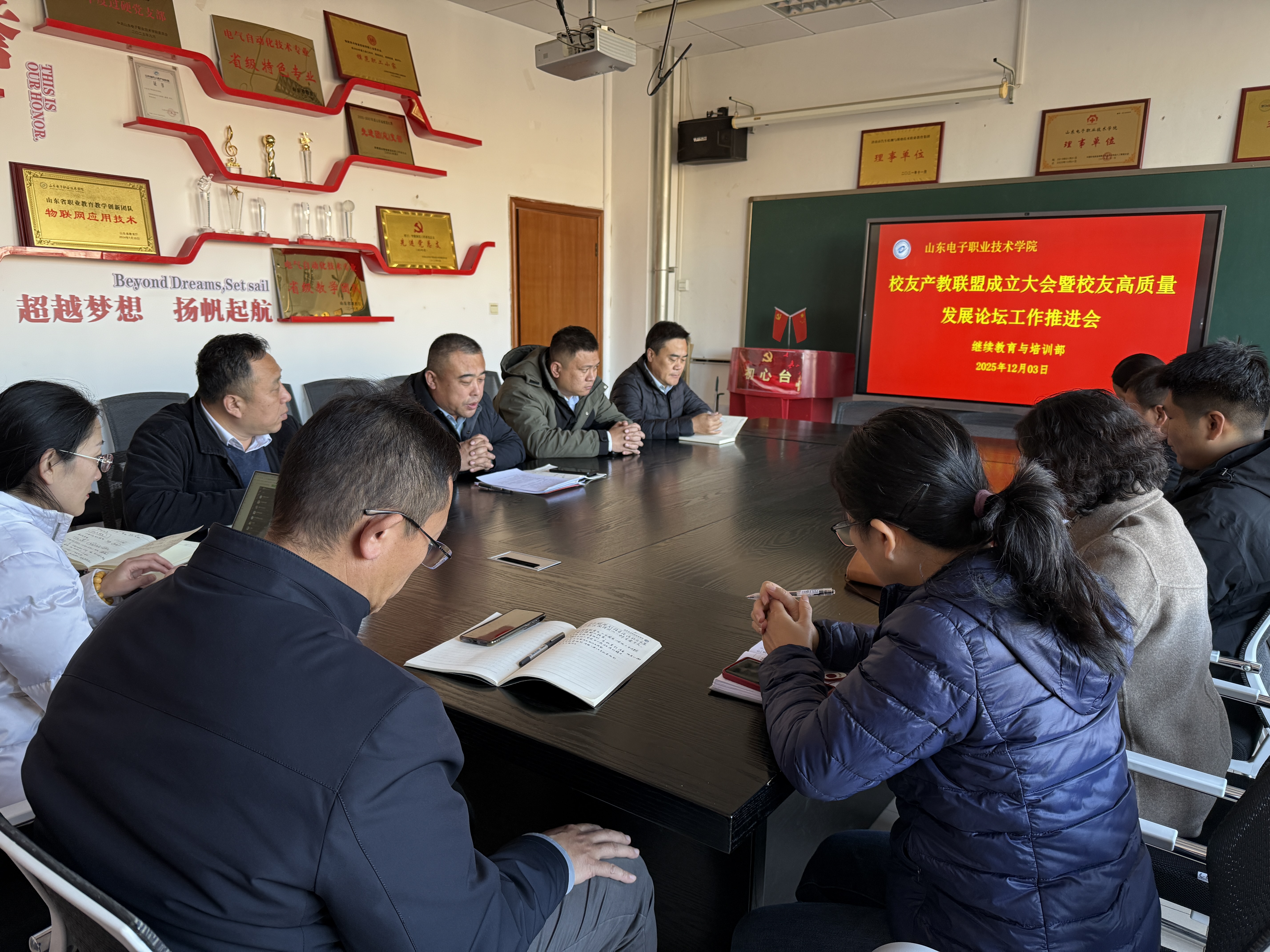 12月3日,山东电子职业技术学院校友联盟成立大会暨校友高质量发展论坛工作推进会顺利召开。会议由继续教育与培训部主任王廷武主持,各系部负责人及校友会副会长李亮、孙德民,校友代表王育箭出席会议。
