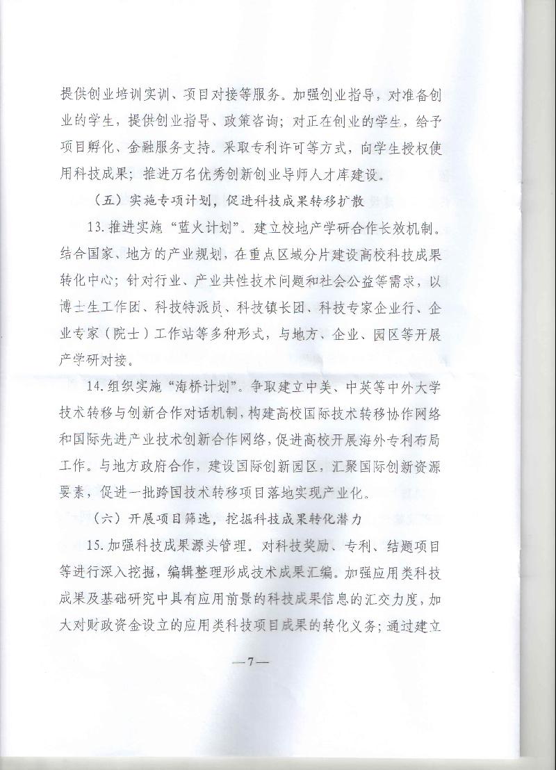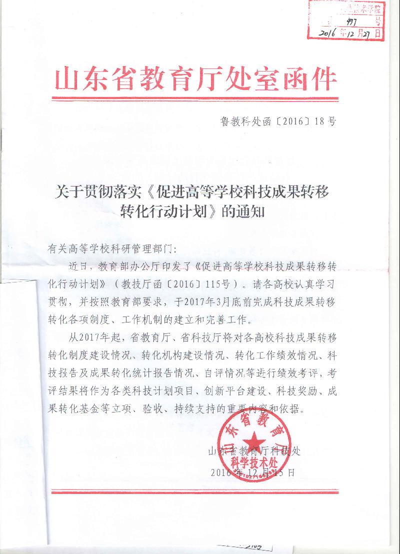 山东省教育厅关于贯彻落实《促进高等学校科技成果转移转化行动计划》的通知