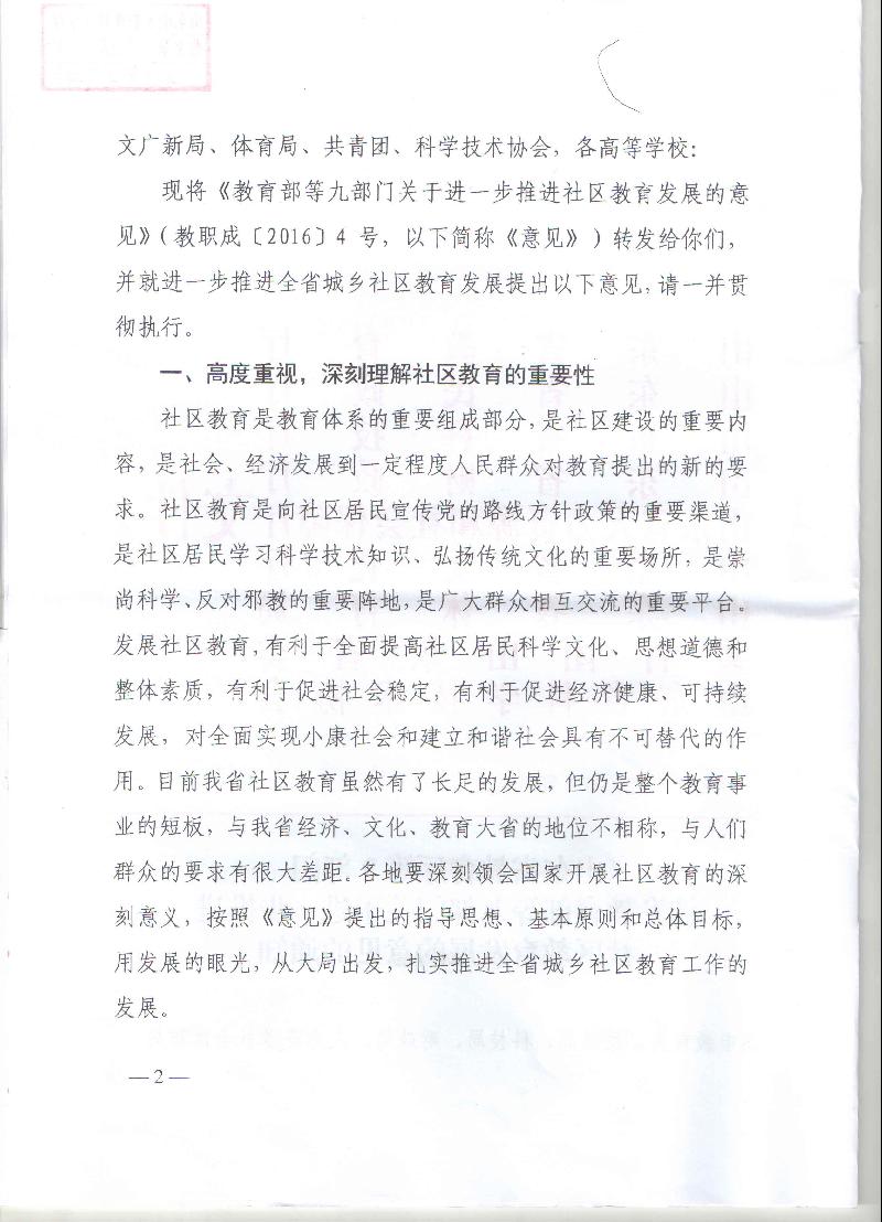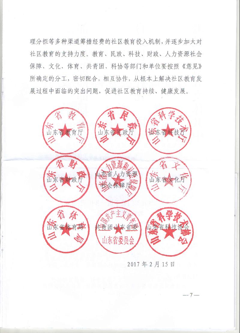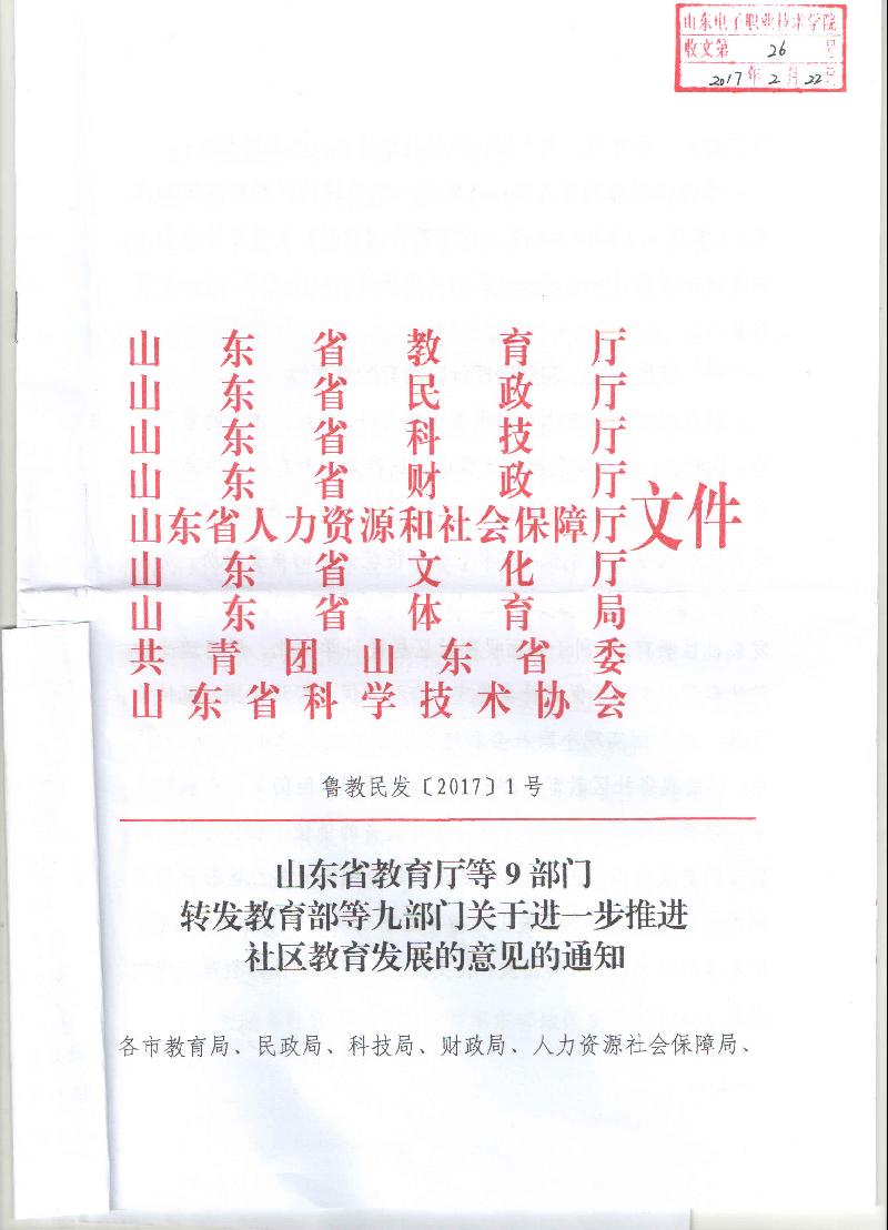 山东省教育厅等九部门转发教育部等九部门关于进一步推进社区教育发展意见的通知