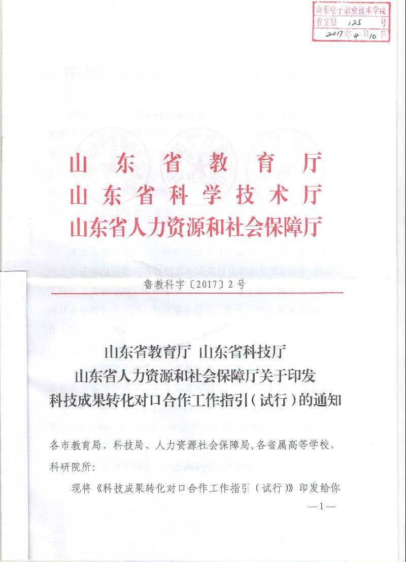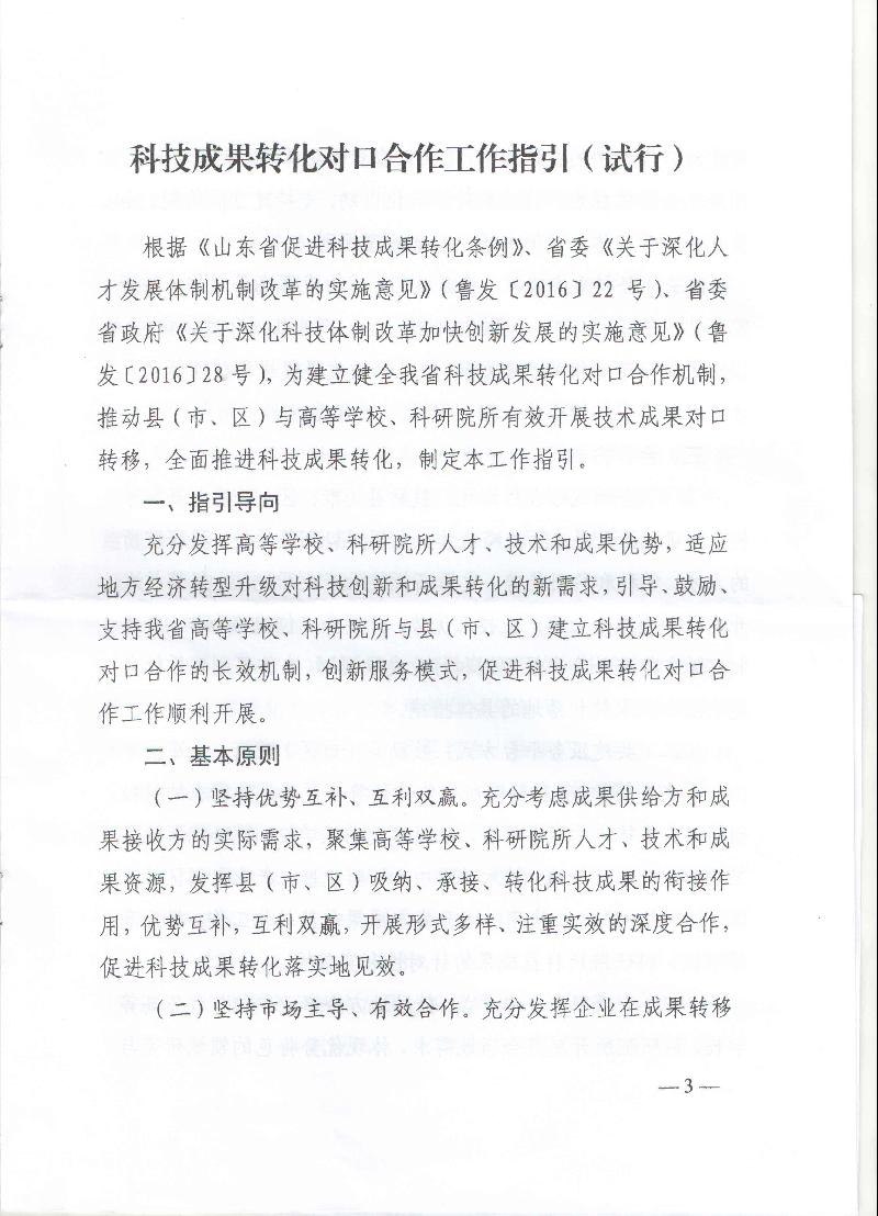 山东省教育厅等部门关于印发科技成果转化对口合作工作指引(试行)的通知