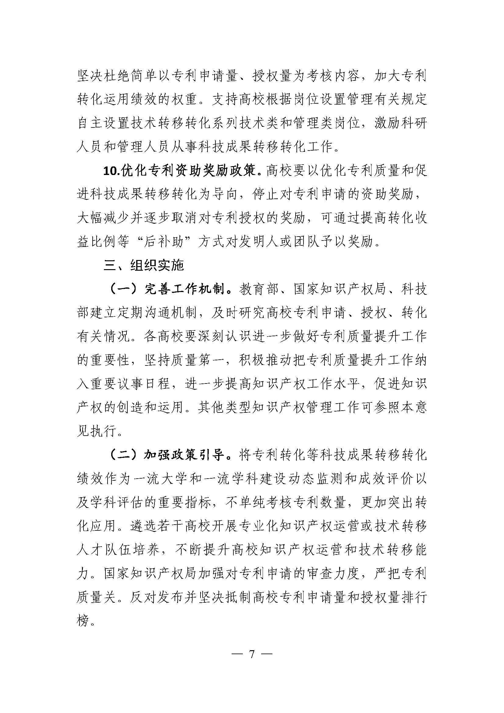 教育部 国家知识产权局 科技部关于提升高等学校专利质量促进转化运用的若干意见