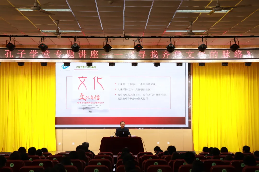 文化兴国运兴,文化强民族强。为落实文化“两创”,增强文化自信。11月23日,计算机与软件工程系在报告厅开展“孔子学堂—寻找齐鲁文化的脉络”专题讲座,我系教师党支部和学生党支部全体党员及各班优秀学生代表参加了此次讲座,原质量管理处处长于钦良担任本次主讲人。