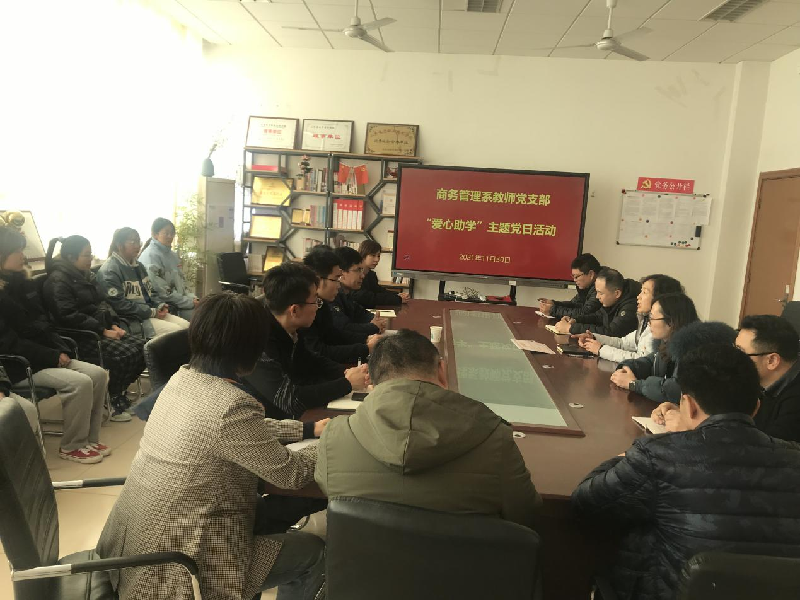 为了教育和引导支部党员教师进一步增强党员意识,体现全心全意为人民服务的根本宗旨,11月30日,商务管理系教师党支部协同山东特亿宝互联网科技有限公司于综合楼408会议室召开了“爱心助学”主题党日活动,用实际行动践行为民服务的初心使命。支部全体党员教师、特亿宝总经理辇玉杰、校区主管穆洋洋、网络营销与直播电商专业校企合作订单班学生代表参加了此次活动。